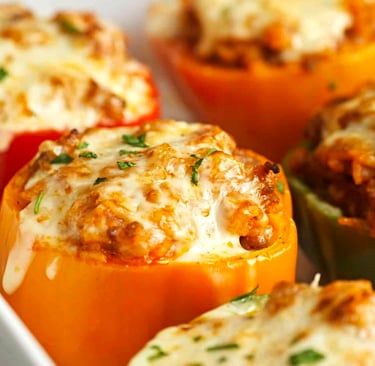 These vibrant, cozy stuffed bell peppers are filled with a savory mix of ground chicken, fluffy rice, and warming spices. Topped with melted cheese and baked to perfection, they’re satisfying, flavorful, and perfect for a comforting dinner. Whether you're meal prepping or feeding the family, this recipe is as easy as it is delicious!